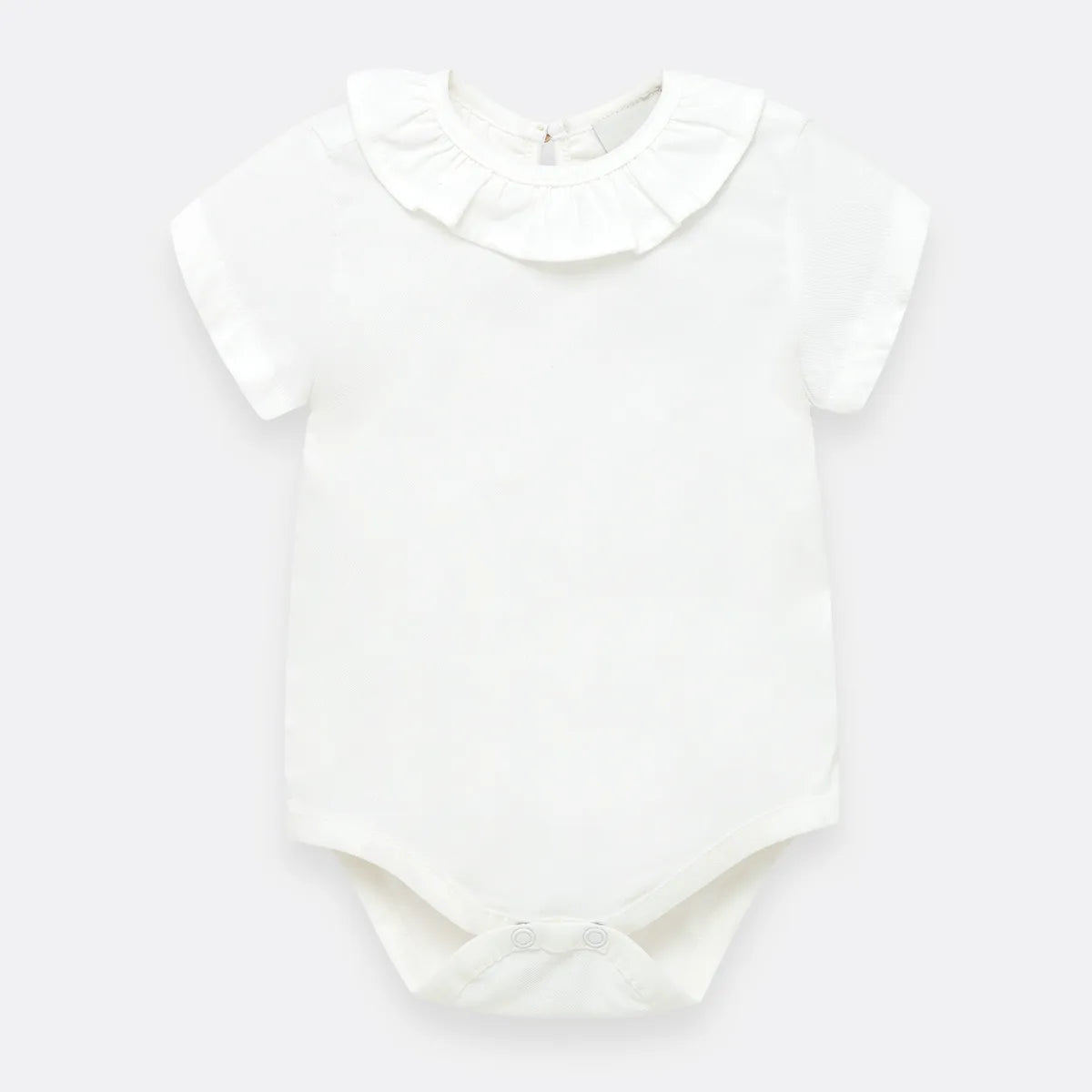 Body manga corta en tejido plano silueta clásica con abertura posterior. Elegancia y comodidad en un solo body.