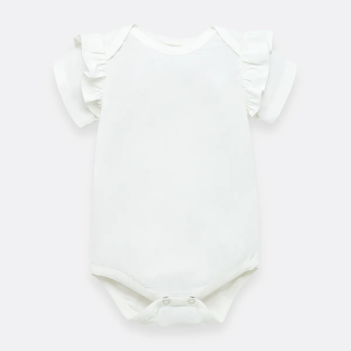 Body en tejido plano con hombros adelantados y broches en entrepierna + falda en tejido de punto con hiladilla interna.