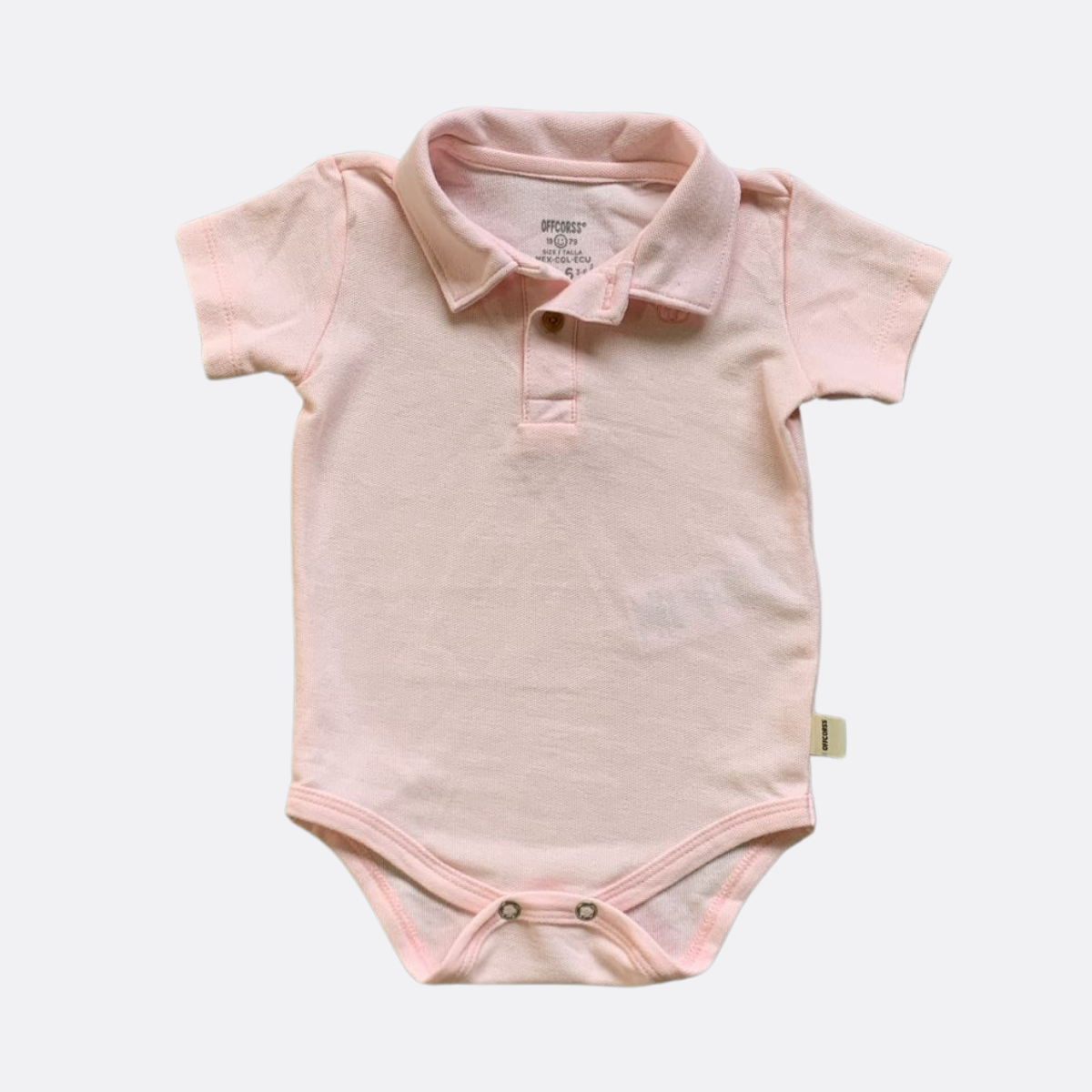 • Body polo manga corta en tejido de punto, silueta clásica, broches en entrepierna, color rosado, composición: 100% algodón