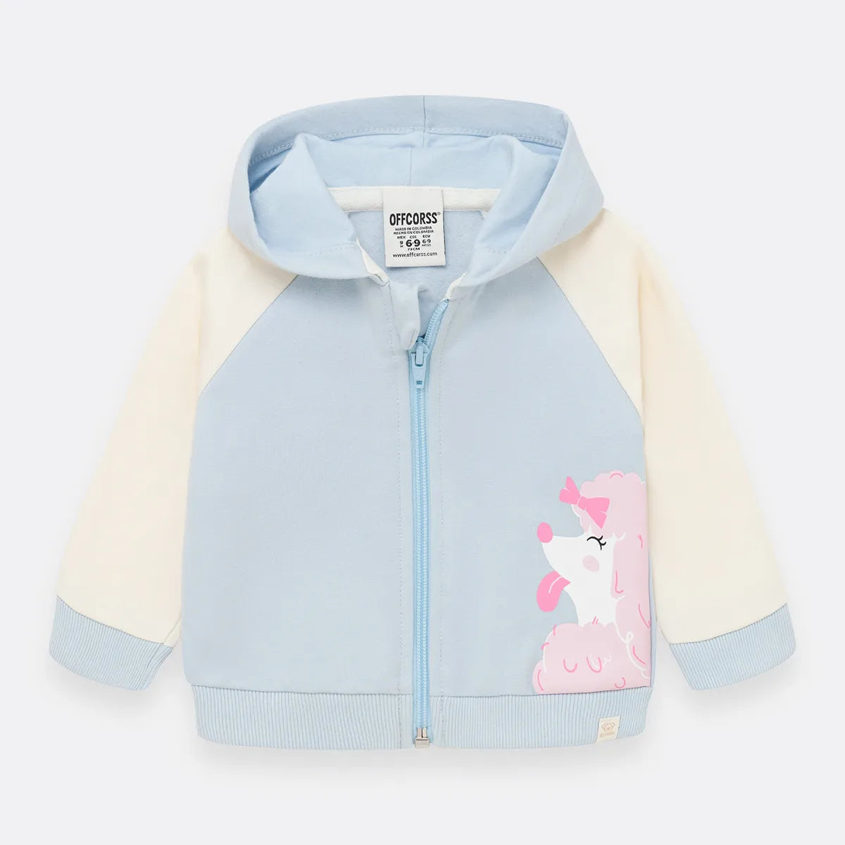 Buzo abierto en tejido de punto con capucha y puños y fajón en rib