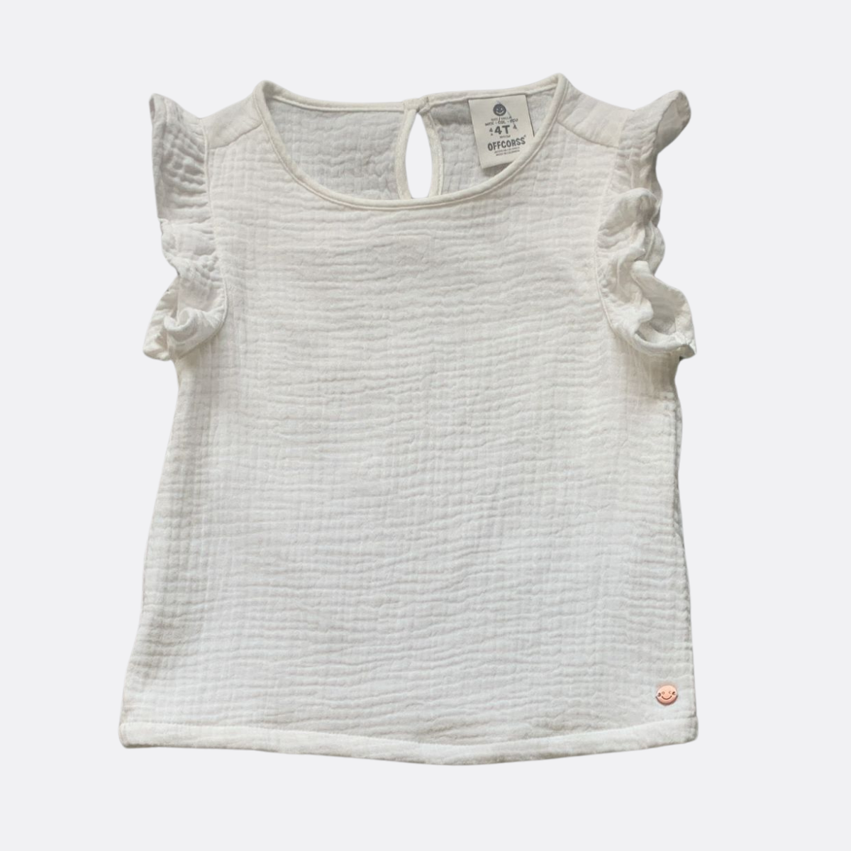 Camisa manga corta para bebé niña de 2 a 5 años. Camisa manga corta en tejido plano con boleros. Con abertura posterior y con corte sobre la línea princesa con doble bolero ¡Ideal para combinar con faldas y shorts! Material: 99% viscosa 1% elastano.