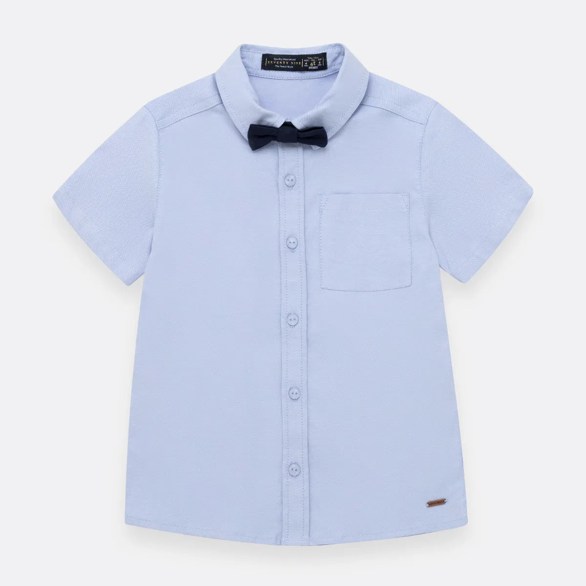 Camisa manga corta en tejido plano silueta clásica con corbatín. Clásico y cómodo; camiseta para un look elegante.