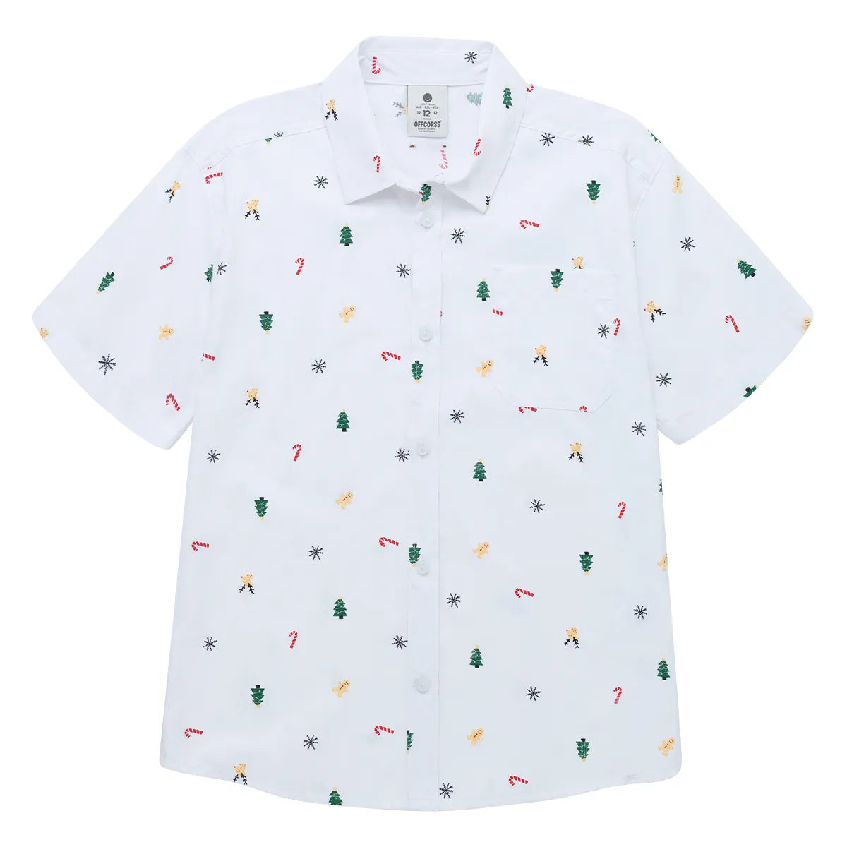 Camisa manga corta navideña para niño (de 6 a 13 años). ¡Un look auténtico para los niños! Esta camisa es perfecta para las festividades navideñas. Camisa manga corta con bolsillo en el frente y tela full estampada. 100% en algodón, es una tela suave y ligera. Elaborada en tejido plano. Composición: 100% algodón.