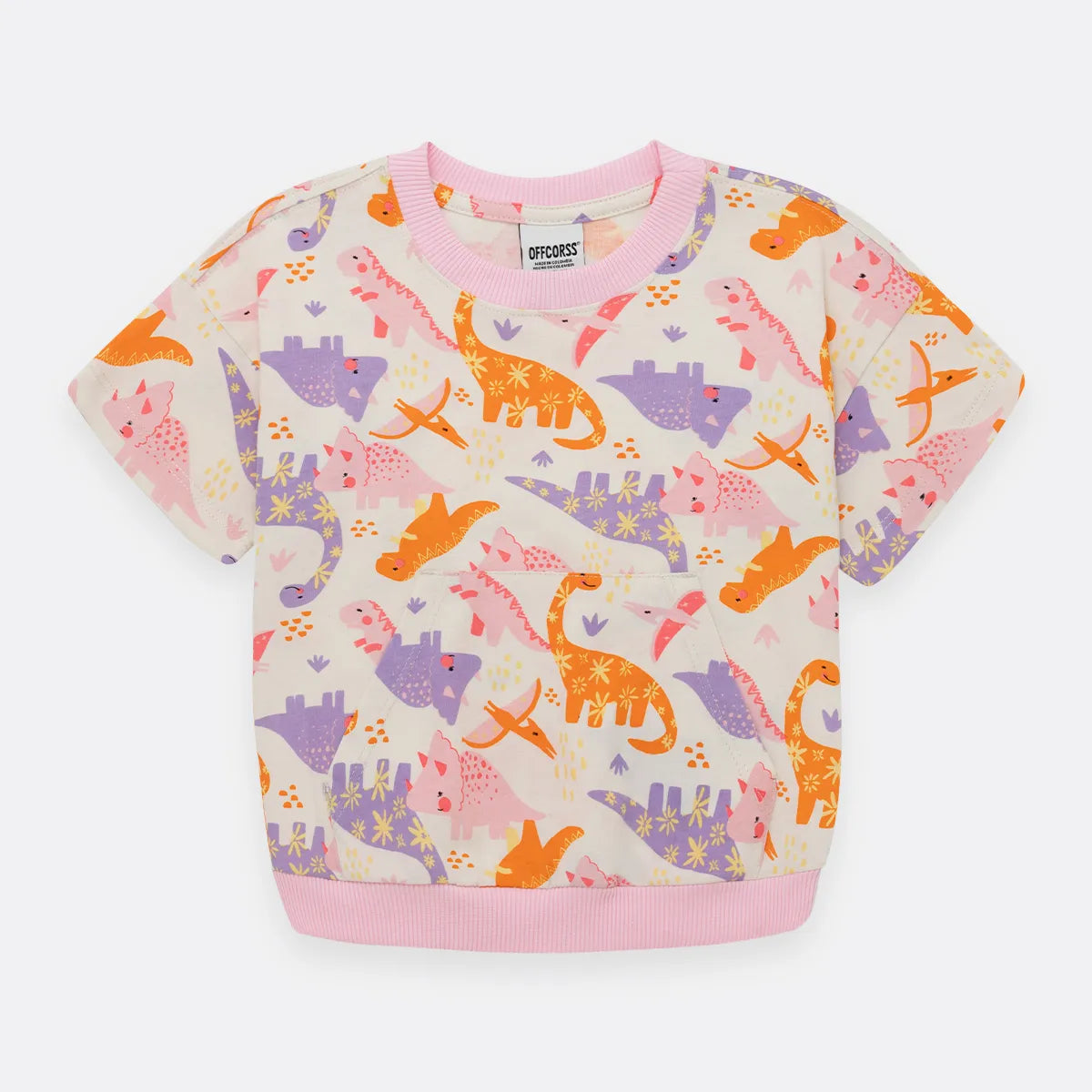 Camiseta manga corta silueta amplia con cuello y fajón en rib