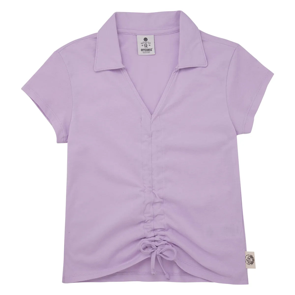Camiseta manga corta para niñas de 5 a 13 años. En tejido de punto, con cuello. Tiene recogido y canal en el frente para graduar el largo. Material: 95% poliéster, 5% elastano