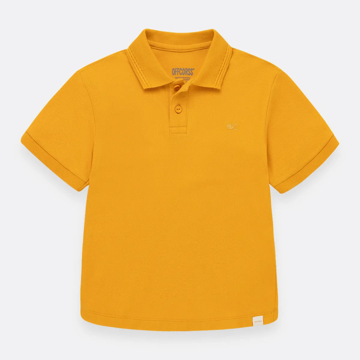 Camiseta polo manga corta en tejido de punto con cuello y puños tejidos. Color mostaza