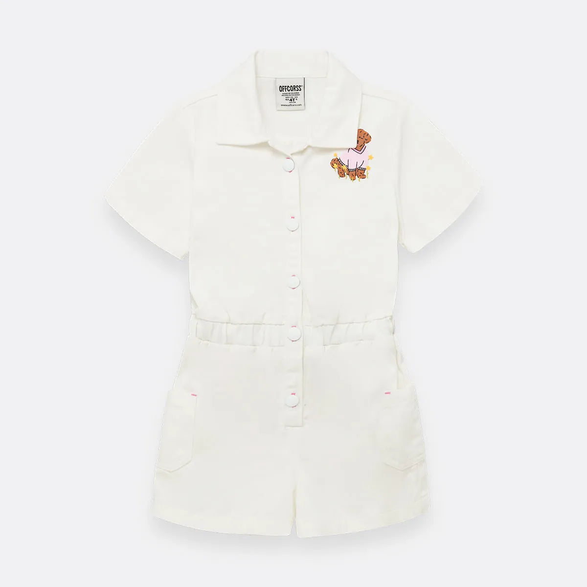 Enterizo corto y y manga corta tejido plano silueta semi amplia; suave, cómodo y lleno de detalles que enamoran.