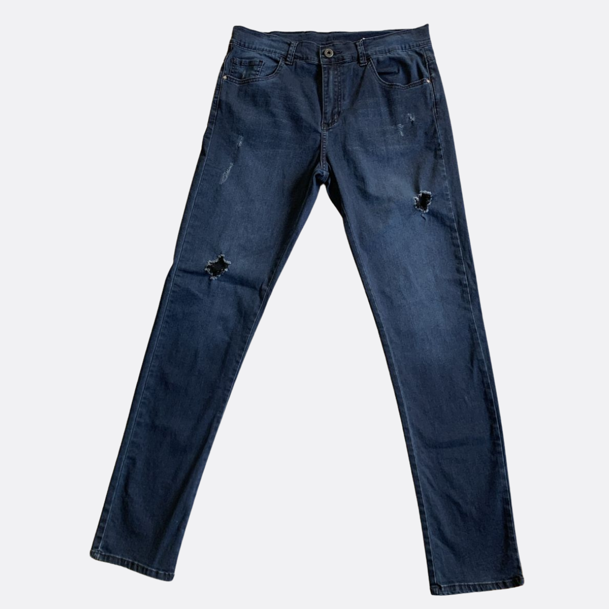 Jean 5 bolsillos en tejido plano para niños de 5 a 13 años. La silueta carrot es de tiro medio, cintura con elástico ajustable, bota ajustada y largo regular. Material: 100% algodón