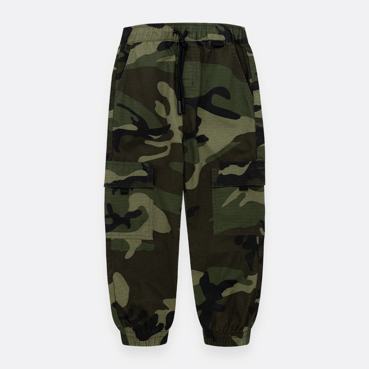 Pantalón en tejido plano silueta tipo jogger, prenda con proceso sostenible, cintura con elástico, cordón ajustable, botas ajustadas