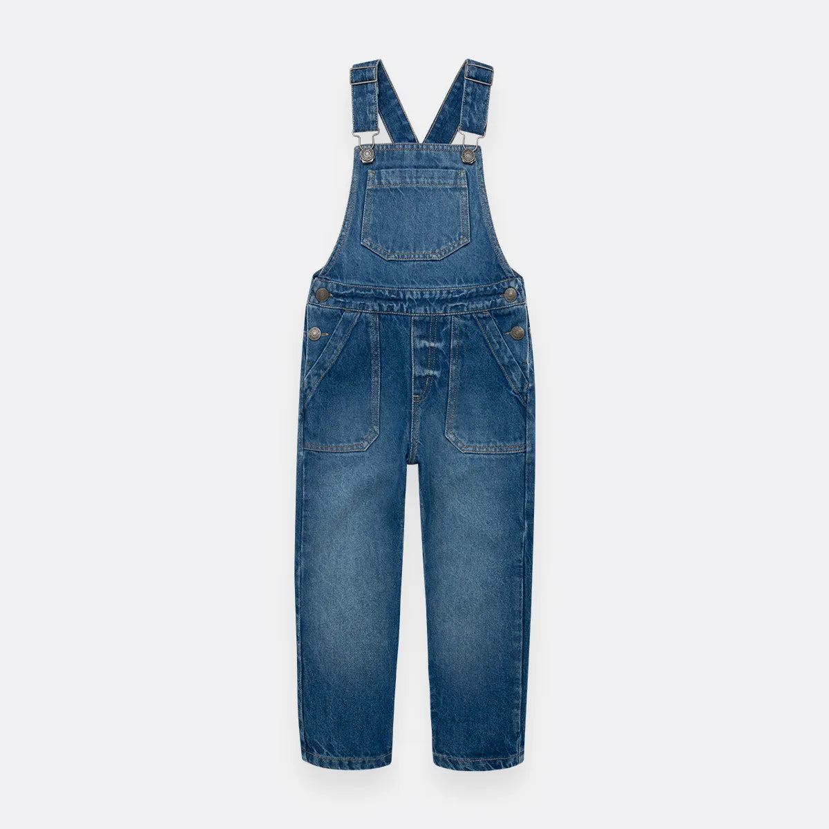 Overall largo denim tejido plano silueta clásica. Funcionalidad, comodidad y el toque de moda más divertido.