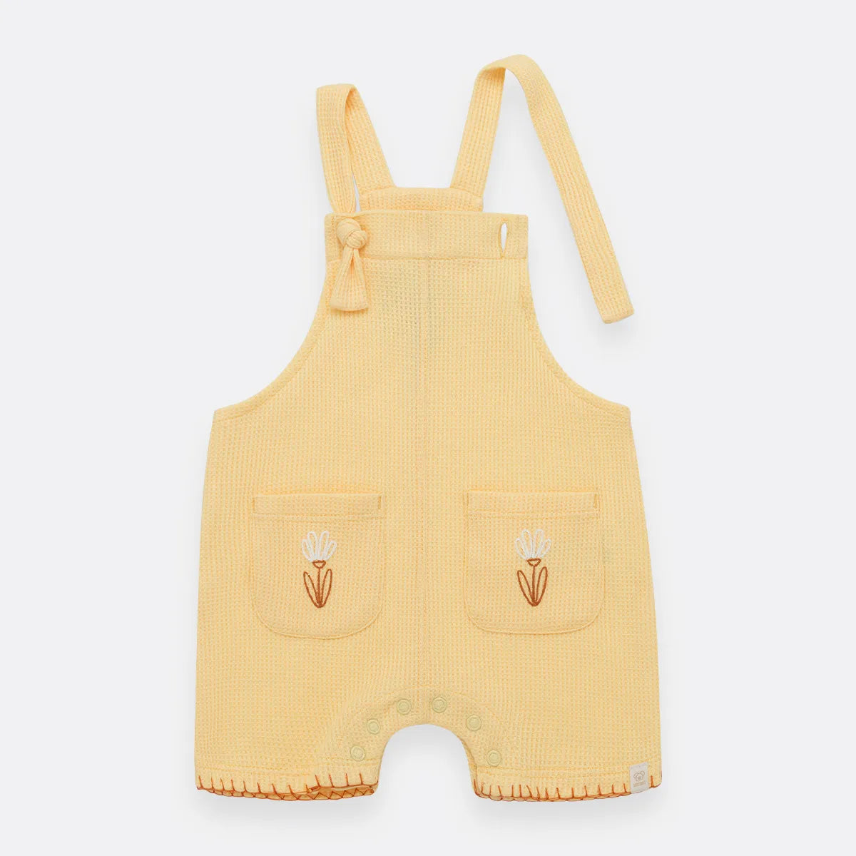 overall en tejido de punto con cargaderas ajustables y broches en entrepierna.