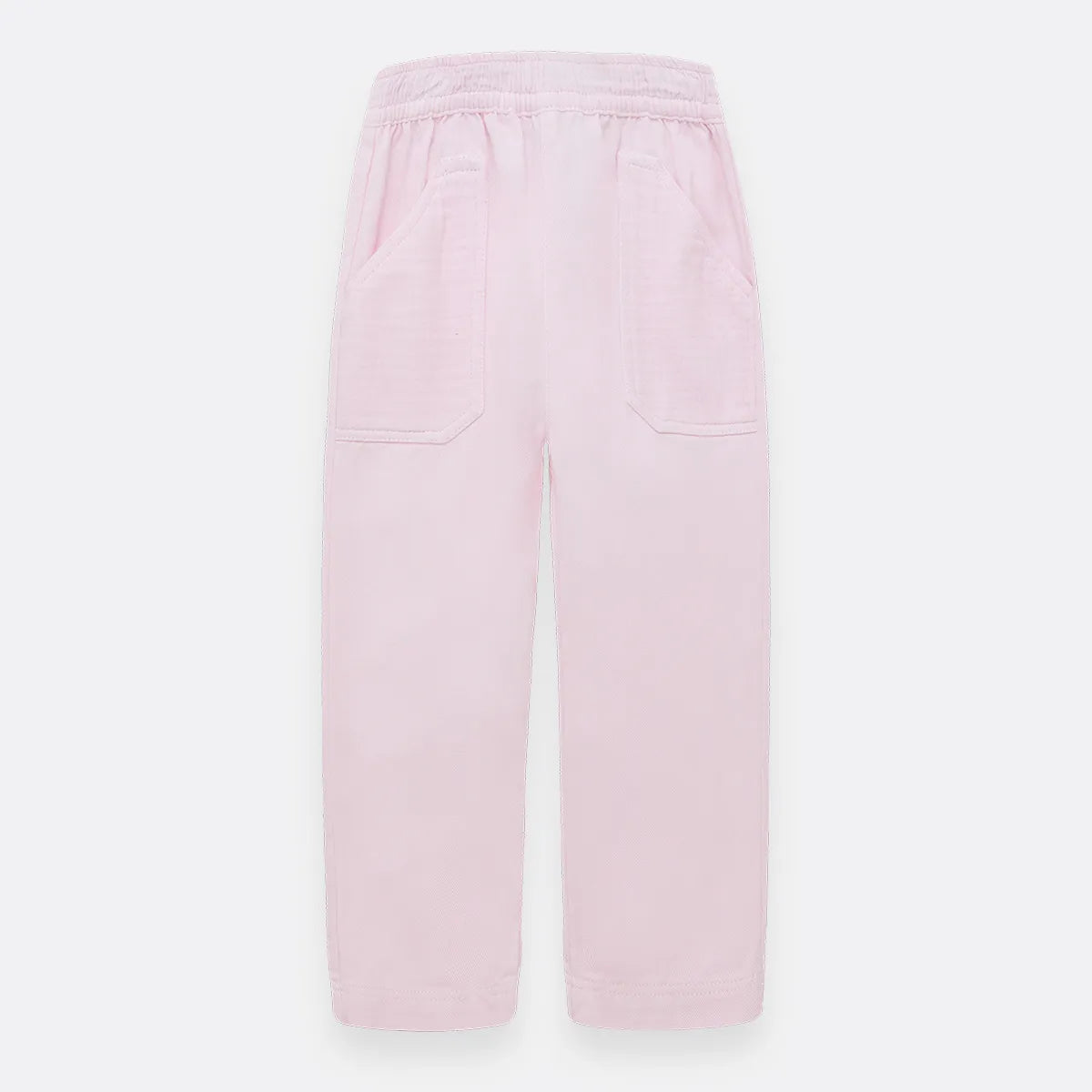 Pantalón en tejido plano silueta recta, cintura elástica, cordón ajustable interno, prenda con proceso sostenible, color rosado