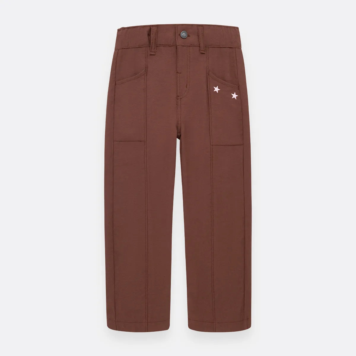Pantalón en tejido plano silueta recta con elástico ajustable interno.