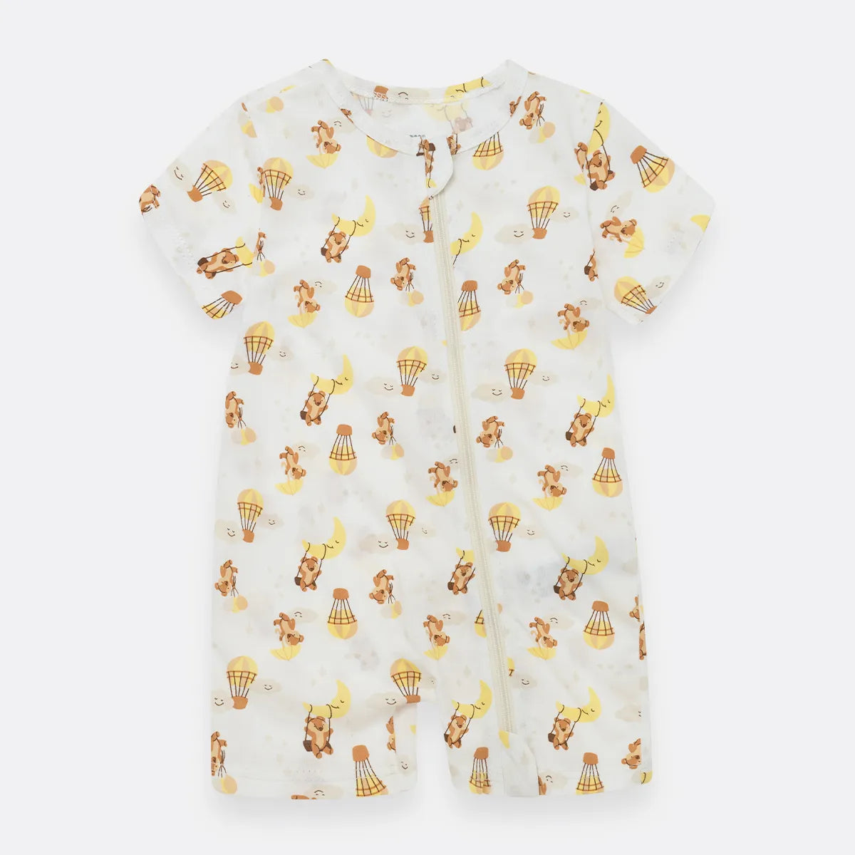 Pijama enterizo corto en tejido de punto silueta clásica con protector de cierre. ¡Sueños frescos y llenos de estilo!
