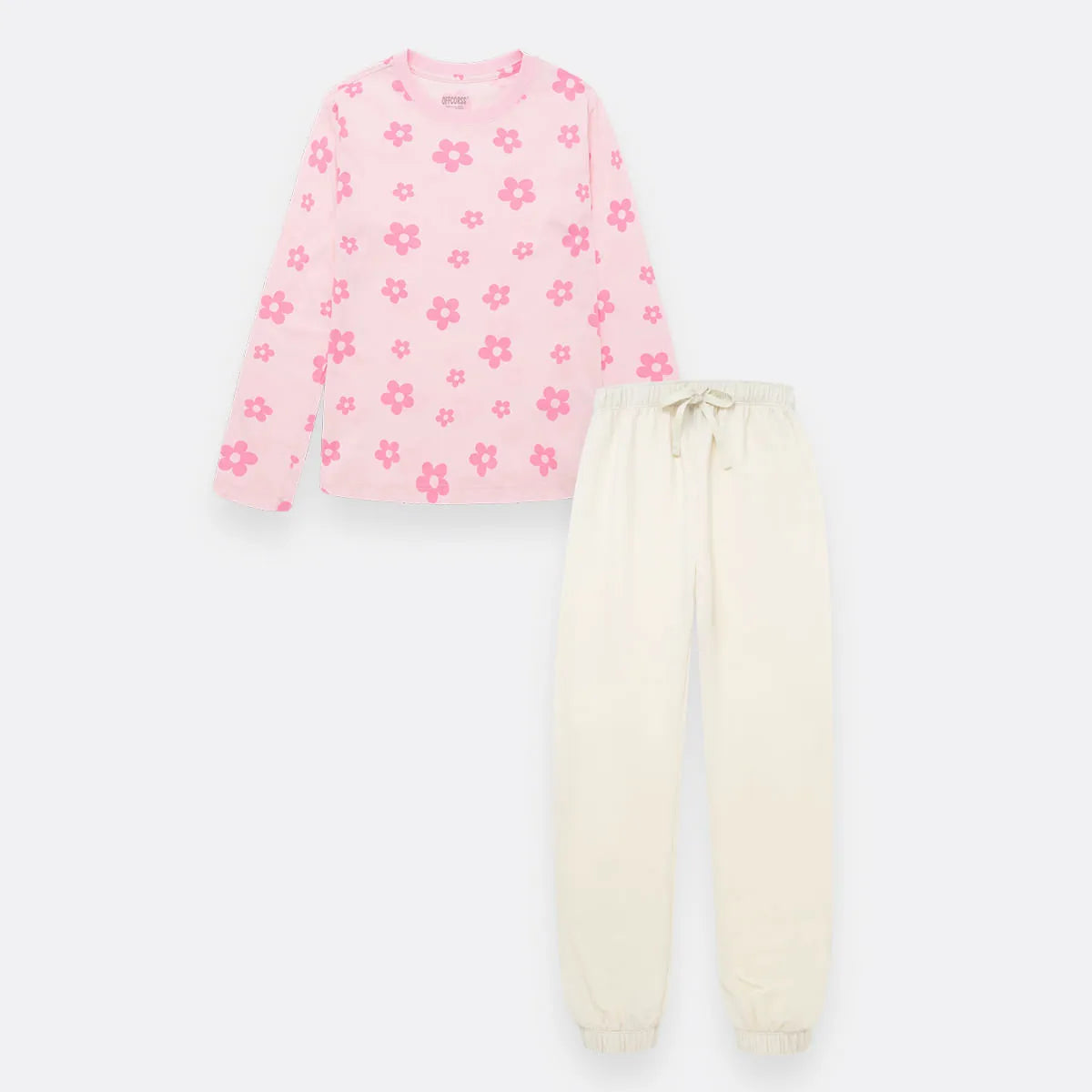 Pijama en tejido de punto de camiseta manga larga + sudadera con cintura y botas elásticas, cordón ajustable. ¡Diversión en cada sueño! Pijamas hechos para noches frías llenas de magia.